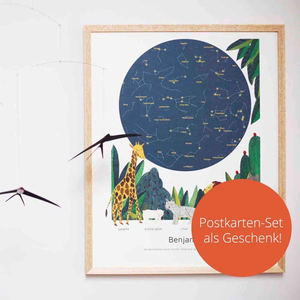 Wir feiern, dass der Frühling fast da ist, und verschenken diesen Monat ein Set Tierpostkarten mit jeder Bestellung. Wusstest du schon, dass unsere Sternenhimmel mit Tierillustrationen etwas Besonderes haben? Die Position der Sterne bestimmt auch die Sternbilder, die als Tiere dargestellt werden. Du kennst wahrscheinlich schon die Sternenkonstellationen Großer und Kleiner Bär, aber wusstest du auch, dass Giraffe und Drache auch Sternbilder sind? Mit unseren Postkarten kannst du diese jetzt auch versenden!
