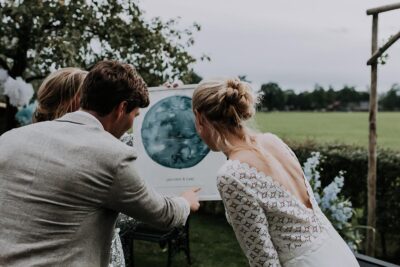 Are you looking for an alternative to the traditional ‘guest book’? Then get the starry sky poster, put it down and let everybody write something on it – it’s a great way to capture and remember who joined you in celebrating your wedding.